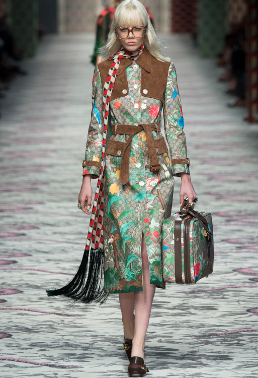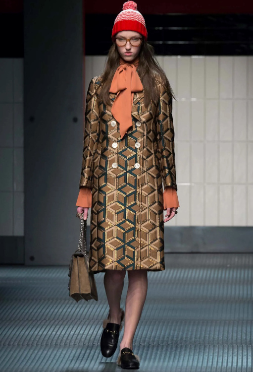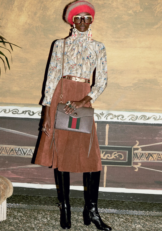 Si elle est soumise à l'influence des différents directeurs artistiques de la maison italienne, la femme Gucci n'en conserve pas moins un ADN clair, entre excentricité flamboyante, romantisme légèrement grinçant, glamour snob et singularité assumée. Aperçu de ce que l'on pourra emprunter à la grammaire stylistique de celle qui mêle avec délectation codes bourgeois, audace scintillante, clins d'oeil vintage et détails intellos.