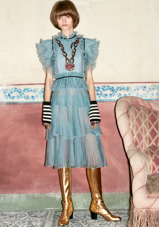 J'aurais du mal à vraiment identifier le style Gucci, le coté lavallière et velours est effectivement assez présent.