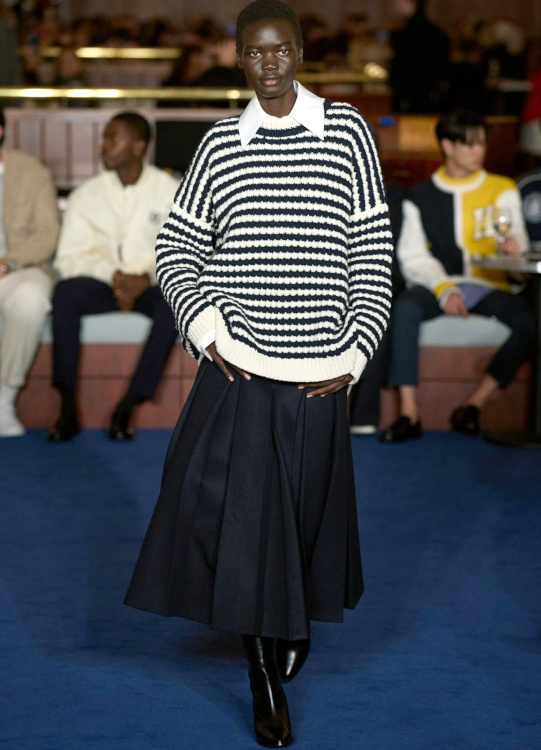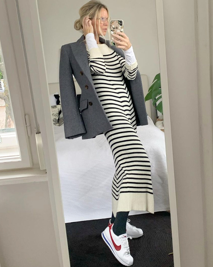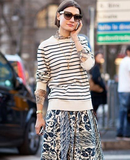 Une toute petite correction à apporter cependant : "Piquer le pull à rayures verticales d'un des hommes de notre entourage et le porter avec une jupe midi"