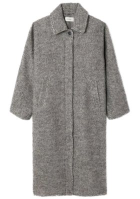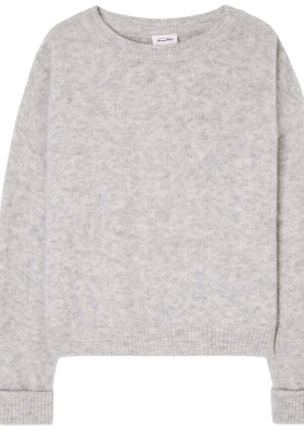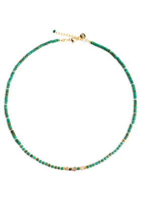 Faire dépasser le collier sur le pull afin de créer un rappel discret avec la teinte du "Swoosh" des baskets. Laisser apparaître le débardeur en dessous du pull gris. Dérouler le poignet du pull afin qu'il dépasse généreusement des manches du manteau. Ajouter à l'envi un bonnet vert d'eau.