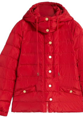 Resserrer les liens situés au niveau de la taille de la doudoune afin de créer un léger effet péplum. Porter le sac à l'épaule. Ne pas boutonner le gilet et roulotter légèrement ses manches. Porter le jean de manière à ce qu'il tombe généreusement sur les chaussures. Opter pour une queue de cheval haute.