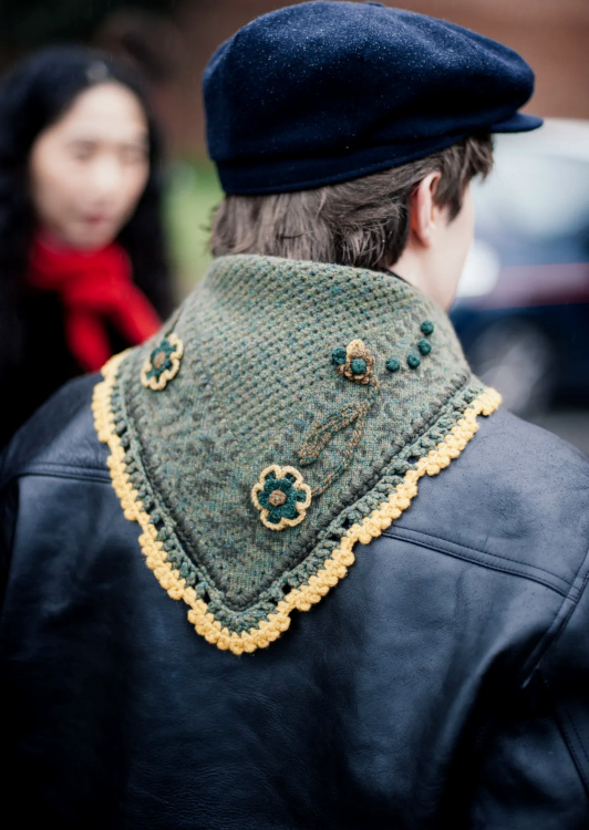 Ne pas hésiter à mêler l'authenticité désuète d'une pièce en crochet avec la modernité lisse d'un cuir (voir ici).
