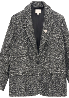 Relever le col du blazer et retrousser légèrement ses manches. Faire dépasser les manches du sweat de celles du blazer. Glisser le devant du sweat dans le pantalon.