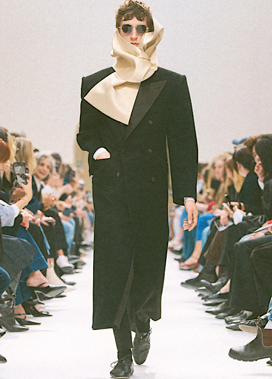 14h - Discussion avec un fervent défenseur de Balenciaga qui, en dépit de sa loyauté envers la maison pour laquelle il officia par le passé, ne résiste pas à la tentation de railler certaines silhouettes du show.