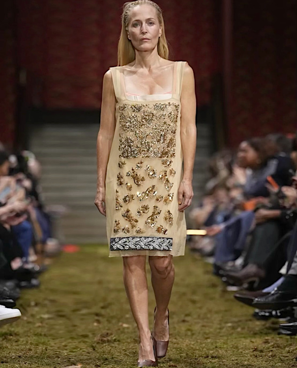 15h - Chez Miu Miu, Gillian Anderson se met à 100% dans la peau d'un top model et nous prive de son sourire espiègle. Dommage.